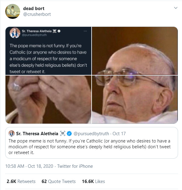 This isn’t the first time Pope Francis — who once called the internet “a gift from God” — has been turned into a meme. However, this is the first time it’s been semi-decent. The old memes were during an era before memes got more sophisticated.